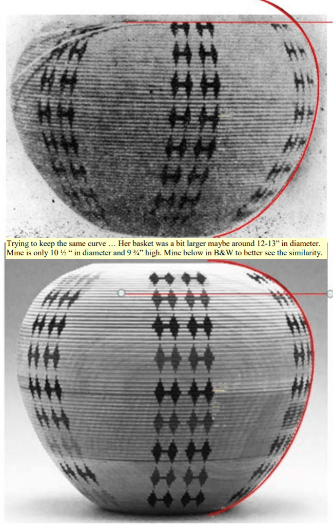 I am also working on a new degikup basket illusion honoring Louis Keyser: her “Unfinished basket”, the one she was buried with. Marvin Cohodas sent me the only picture that exists of that basket.