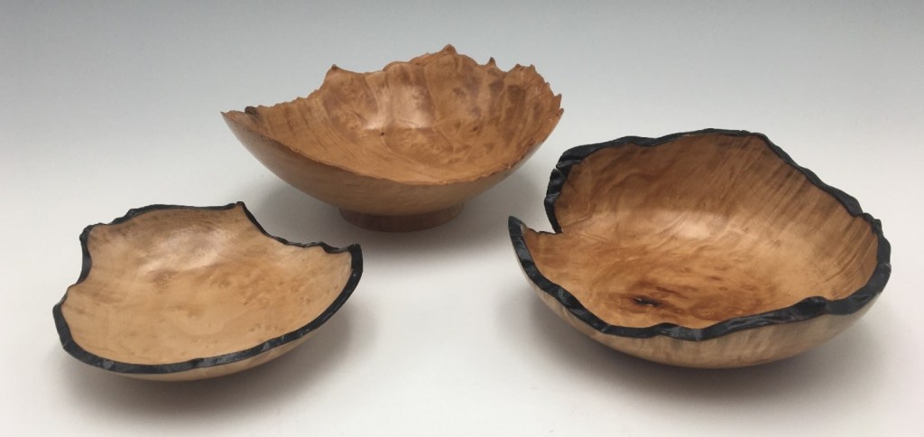 Trays, Woodturning Trays Posted by jlwoodshop on July 15, 2021 Tray 6″x1″ in spalted carob with turquoise inlay. Date: December 2019 Live edge tray 5″x2″ in Monterey Cypress. Natural edge Jewelry trays in madrone burl, 6″x2″, 5″x1 1/2″ and 3 1/2″x1″. Date: March 2020 Maple Burl Share this: Click to share on X (Opens in new window) X Click to share on Facebook (Opens in new window) Facebook Like Loading... Related